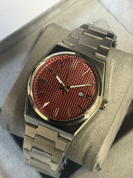 KLASİK ÇELİK KASA BORDO DOKU ERKEK SAAT
